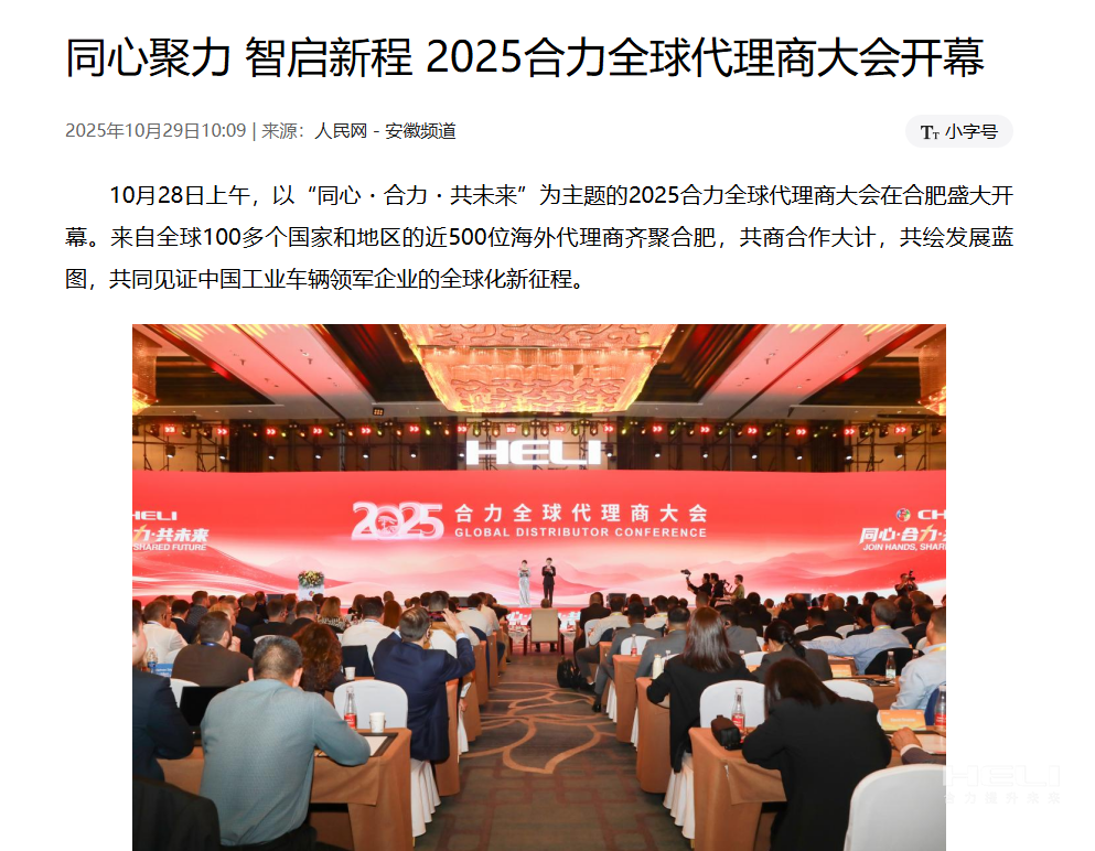 安徽經(jīng)濟網(wǎng)丨同心聚力 智啟新程——2025合力全球代理商大會在合肥開幕