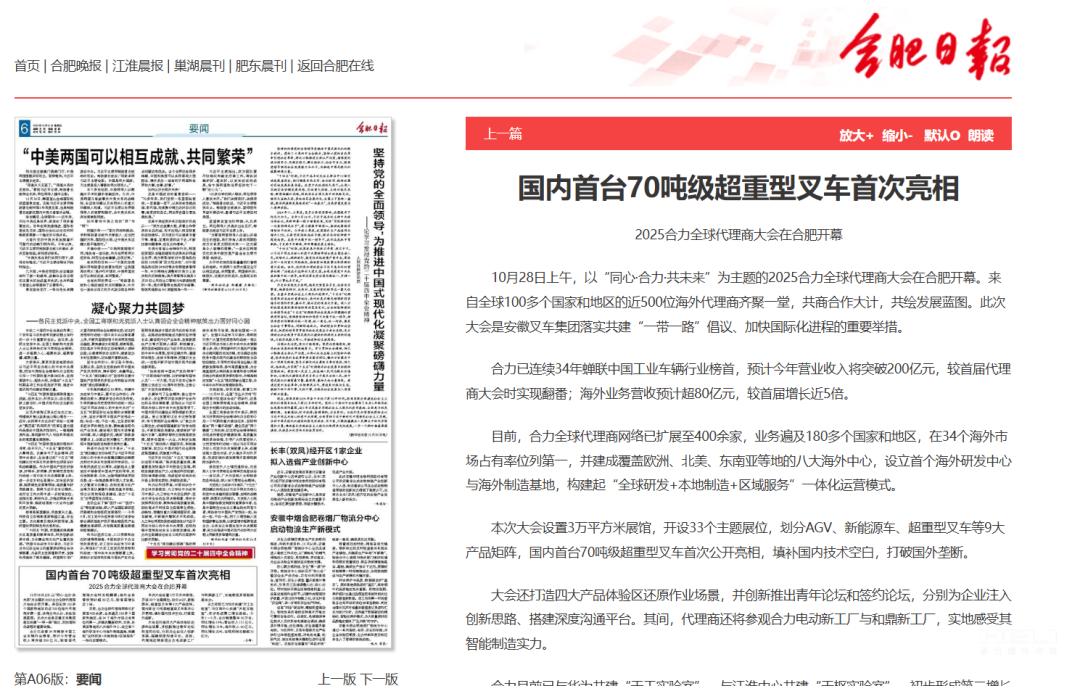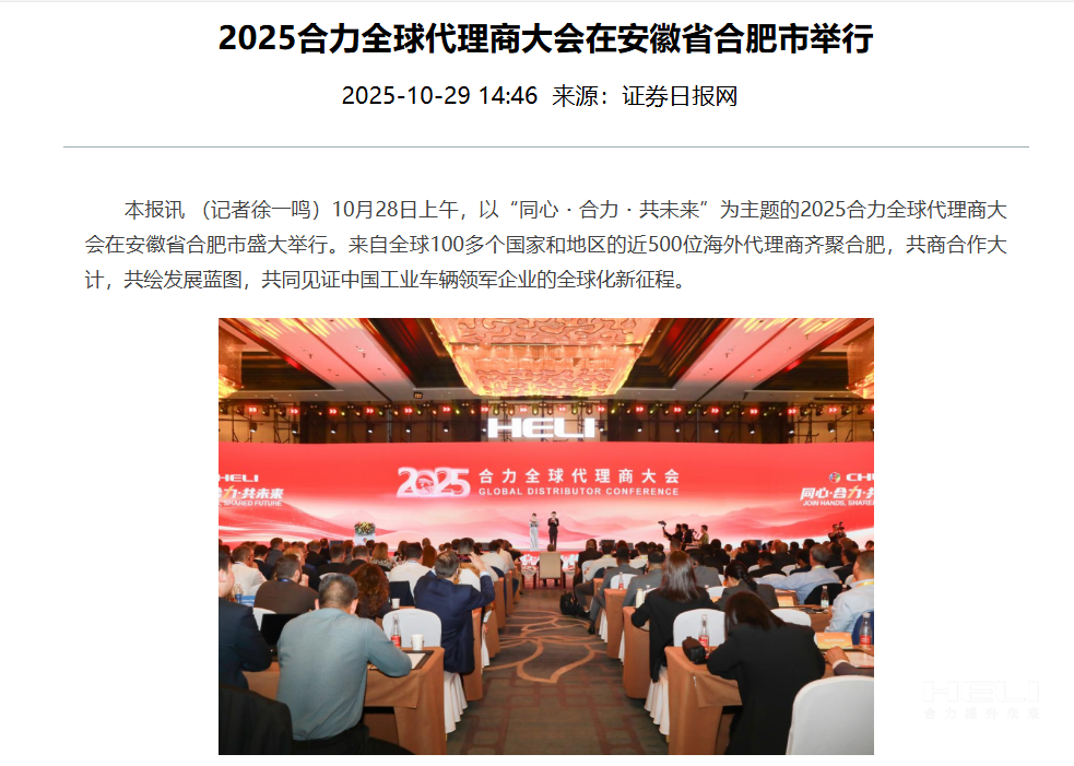 證券日報網(wǎng)丨2025合力全球代理商大會在安徽省合肥市舉行